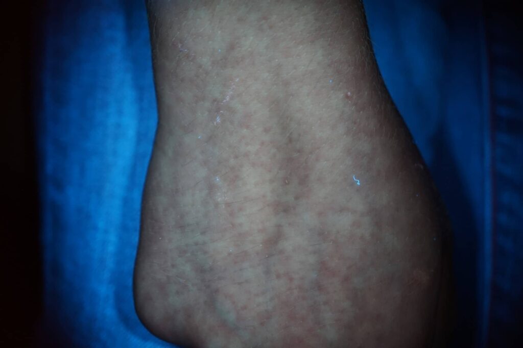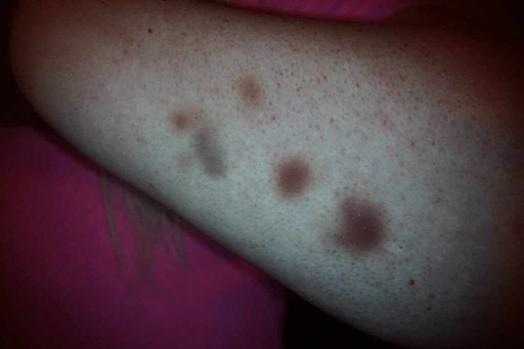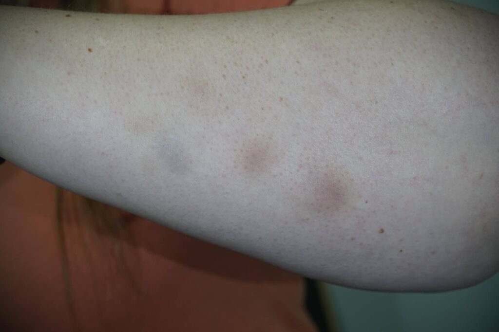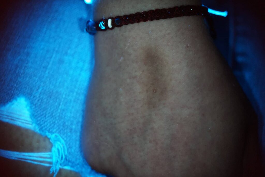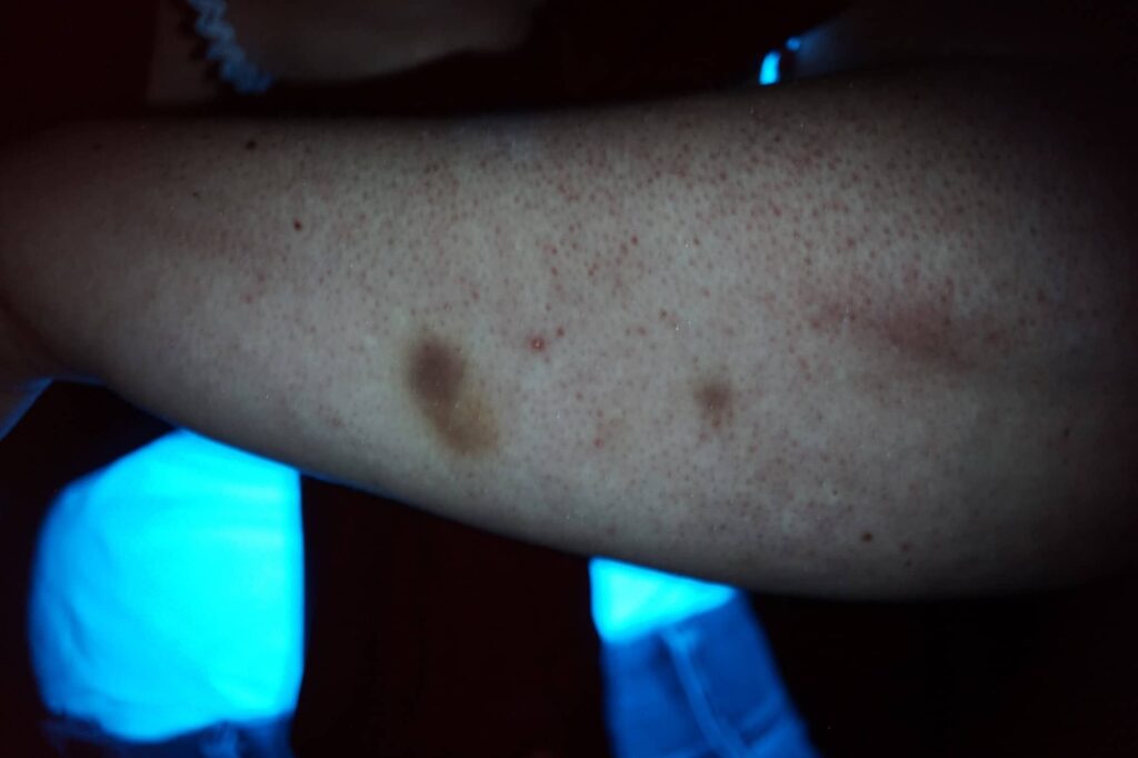 Using a Forensic Light Source, we can enhance the visibility of even the faintest bruises, as shown in the images below: